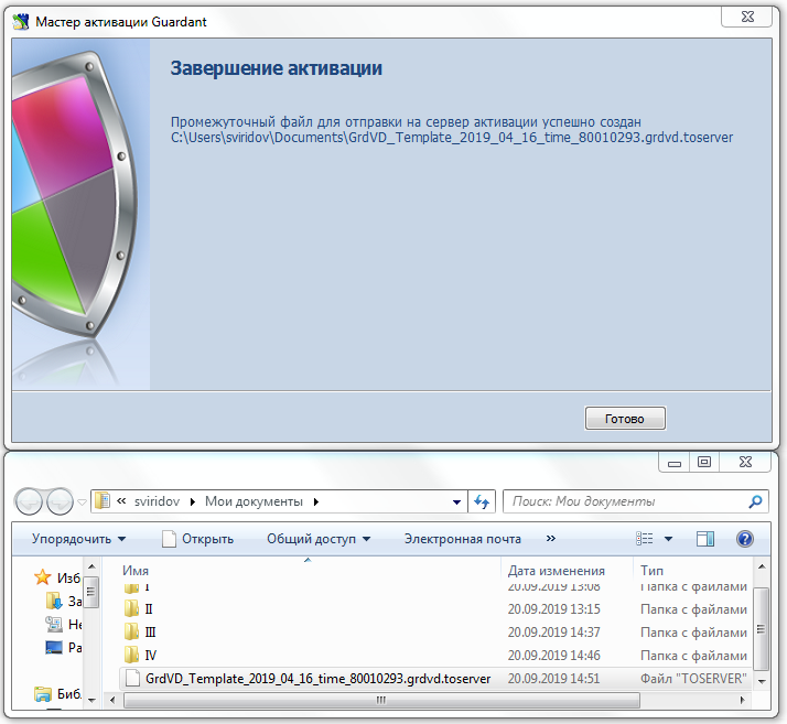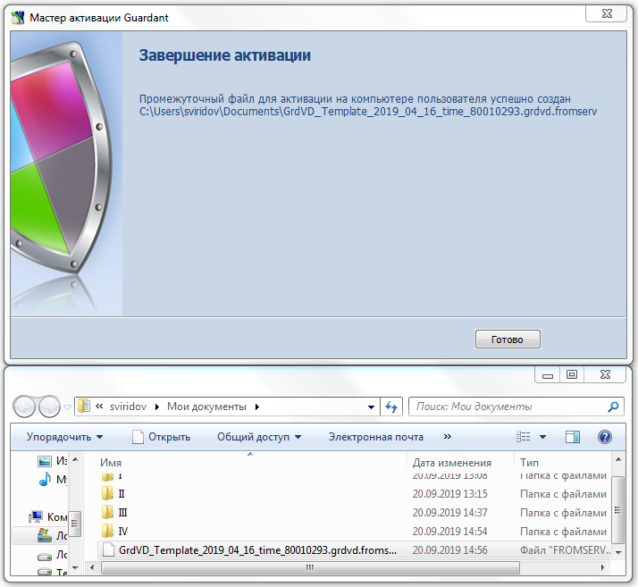 5. Программа соединится с сервером активации и сгенерирует еще один файл, который нужно перенести на компьютер конечного пользователя для завершения активации: