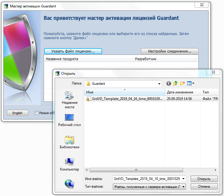 При недоступности в момент активации SP-ключа сети интернет (online-режим) для компьютера конечного пользователя, существует возможность активации в offline-режиме. Чтобы активировать ключ Guardant SP в offline-режиме: