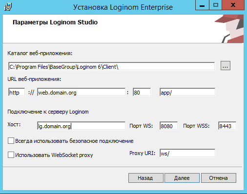 - Порт WS — определяет номер порта для подключения Loginom Studio по протоколу websocket (ws).